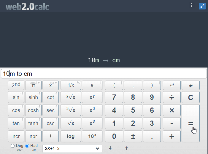 Đổi đơn vị đo cũng rất hay dùng, Trình Máy tính online này cũng cho phép bạn đổi đơn vị dễ dàng bằng cách nhập từ bàn phím.